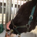 First you need to understand that the best way to get the medicine into Sweet Pea without wearing it or putting it all into the stall bedding is with an Oral Dose Syringe. Your friendly vet should be able to provide you with one. They look like a normal syringe but are much larger and don’t have a needle. (Think Paste Wormer) Now you just have to figure out how to get the medicine into the syringe and then into the horse. Here’s the best way I have found…